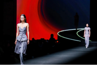 公司CHEN.1988产业学院成果发布秀,使开幕式的氛围达到了高潮,为现场观众带来了一场极具创意的时尚视觉盛宴。本场发布会以“刚柔对话”为主题,将建筑般的硬朗结构与流动的柔美线条巧妙融合。在刚与柔的对话中,重塑了当代时装剪裁的边界。
