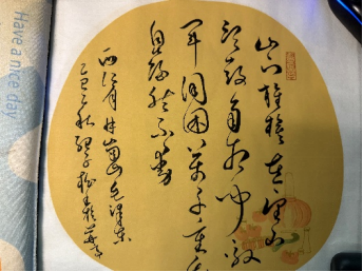 这幅草书《西江月·井冈山》,以狂放洒脱的笔墨演绎革命经典,将毛泽东同志笔下井冈山斗争的壮阔豪情,与草书“任情恣性”的艺术特质相融,让红色史诗在笔墨纵横间焕发别样生命力。在书法表达上,作品尽显草书“重意尚气”之妙。开篇“山下旌旗在望,山头鼓角相闻”,笔势舒展连贯,线条如旌旗漫卷、鼓角传响,暗合战场初现的辽阔;“敌军围困万千重”则笔锋骤紧,墨色浓重,笔画交错如敌军压境的紧迫;“我自岿然不动”反以沉稳笔触落墨,看似舒缓却筋骨暗藏,尽显红军临危不乱的定力。