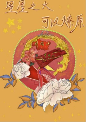 这两幅作品围绕井冈山红色文化展开,以鲜艳的色彩和丰富的元素,展现了井冈山革命精神的传承与弘扬。画面中的红旗、火炬等象征着革命火种,军人形象与“星火相传”的文字相呼应,寓意着井冈山红色文化如不灭的星火,在岁月中持续传递,激励着一代又一代人铭记革命历史,花朵则寓意着革命精神在岁月中绽放,激励后人铭记井冈星火,传承红色基因,沿着革命先辈的足迹砥砺前行。,传承红色基因,让井冈山精神在新时代熠熠生辉。